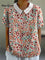 Women's Flower Art Print Casual Cotton And Linen Shirt