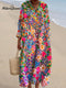 Women's Flower Art Print Cotton & Linen Casual Long Shirt