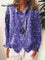 Women's Flower Art Print Cotton & Linen Casual Long Shirt