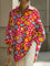 Women's Flowers Floral Patterns V-neck Long-sleeved Casual Loose-fitting Knitted Pullover Sweater