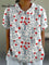 Women's Fresh Red Florets Print Casual Cotton And Linen Shirt