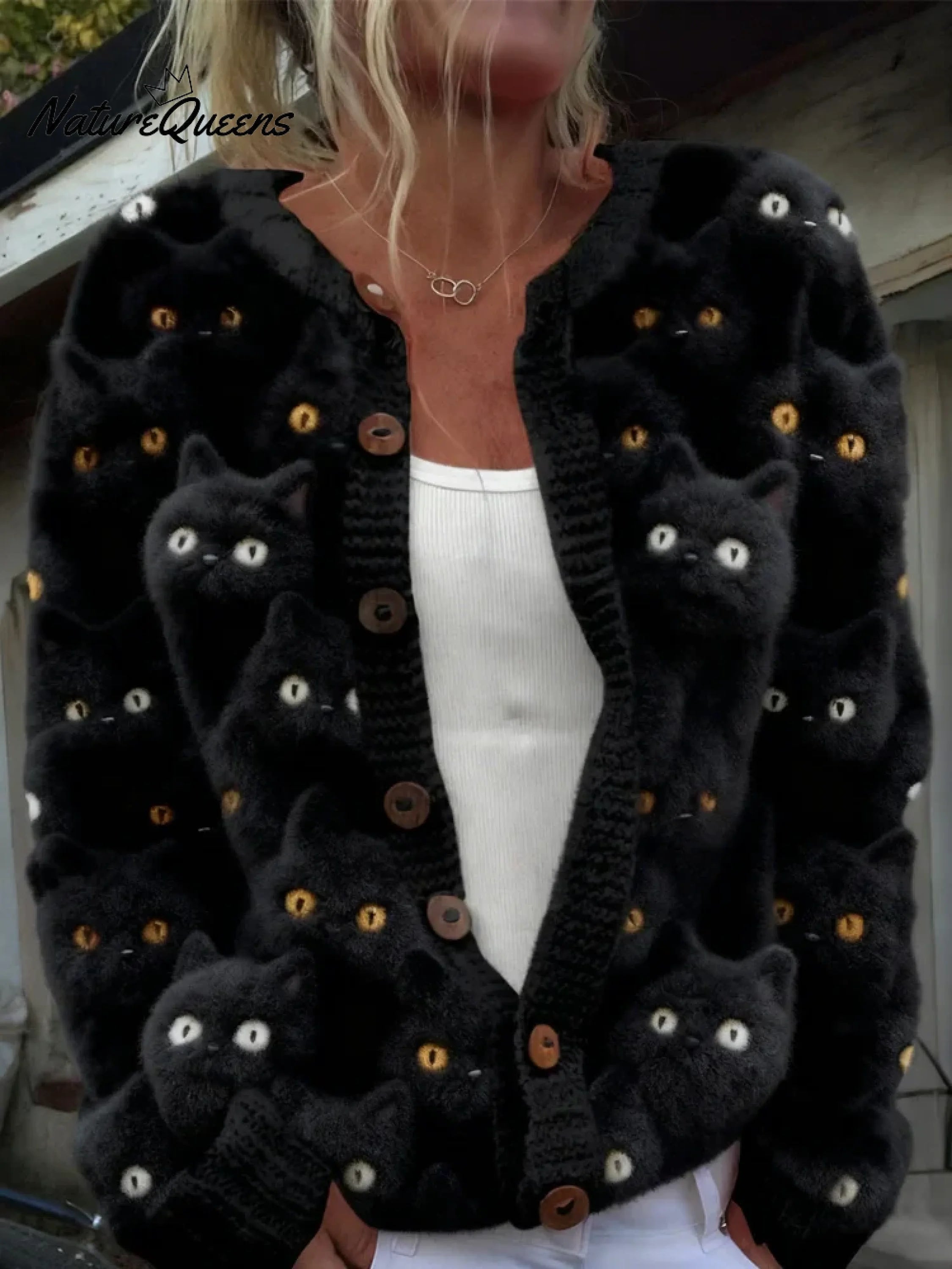 Women's Funny Cats Art Print Casual Knit Sweater