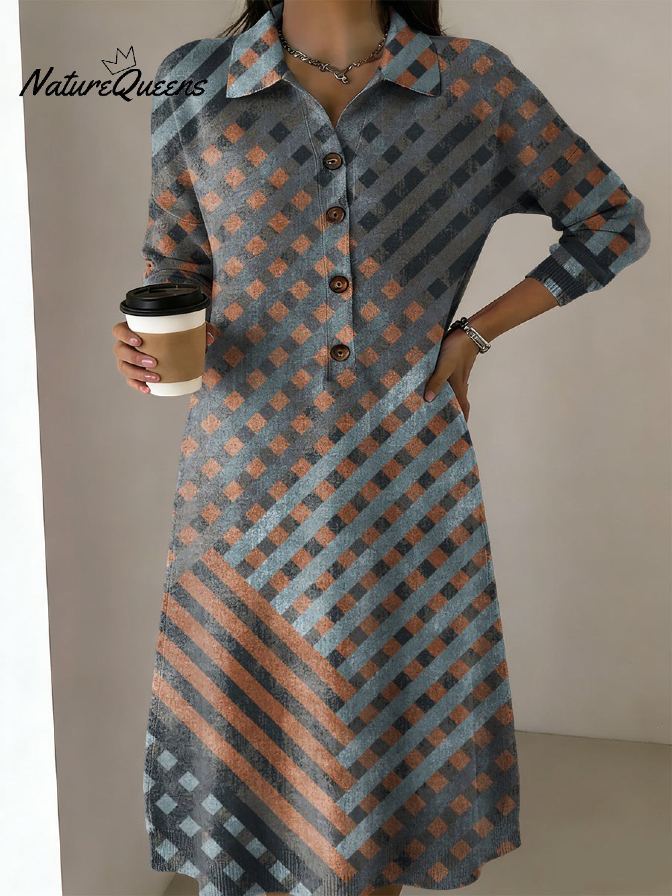 Women's Geometric Line Decorative Patterns Casual Shirt Collar Long Sleeve Dress