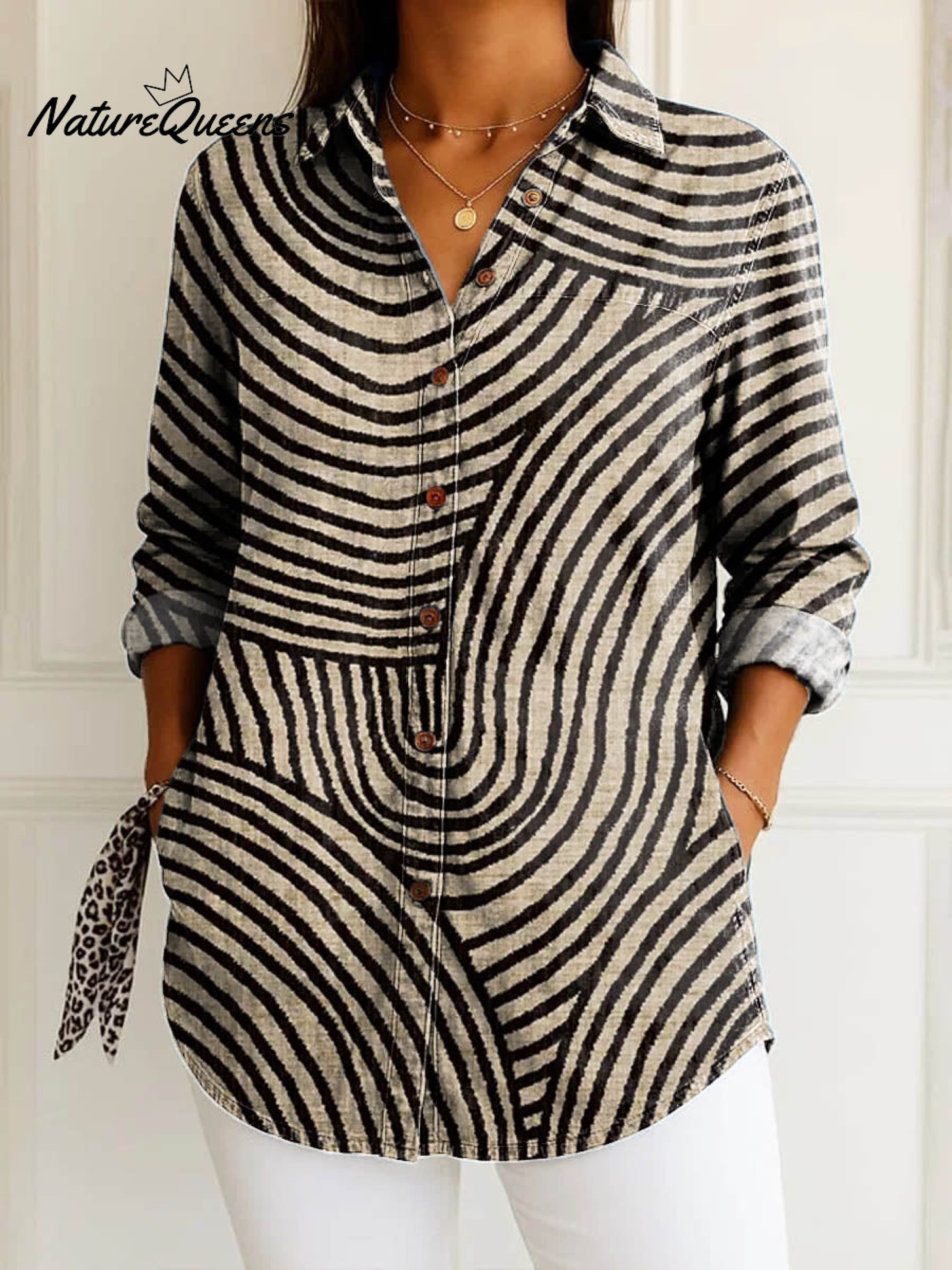 Women's Geometric Line Pattern Art Print Casual Cotton Shirt