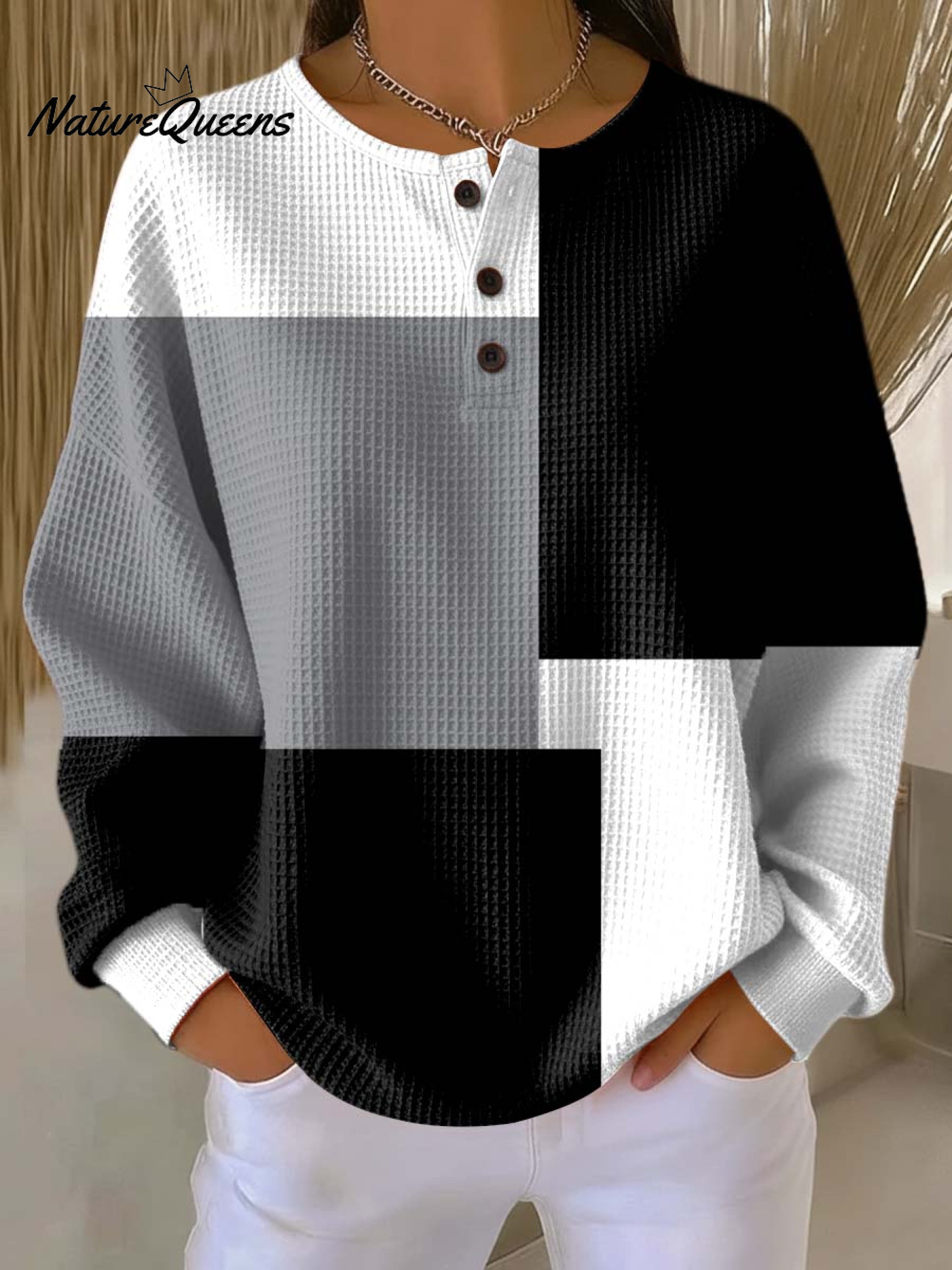 Women's Geometric Pattern Art Print Casual Cotton Waffle Sweatshirt