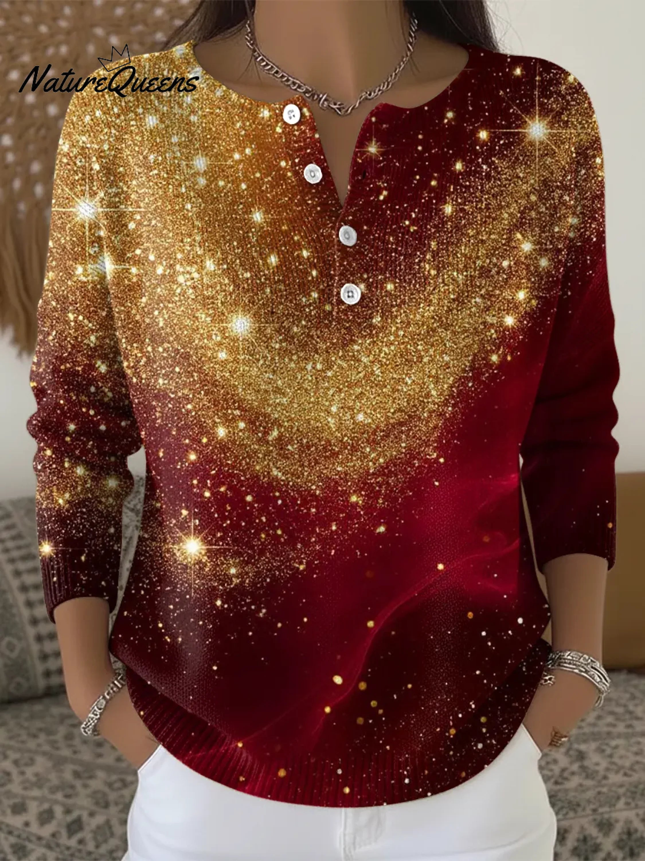Women's Gold Glitter Gradient Casual Printed Sweater