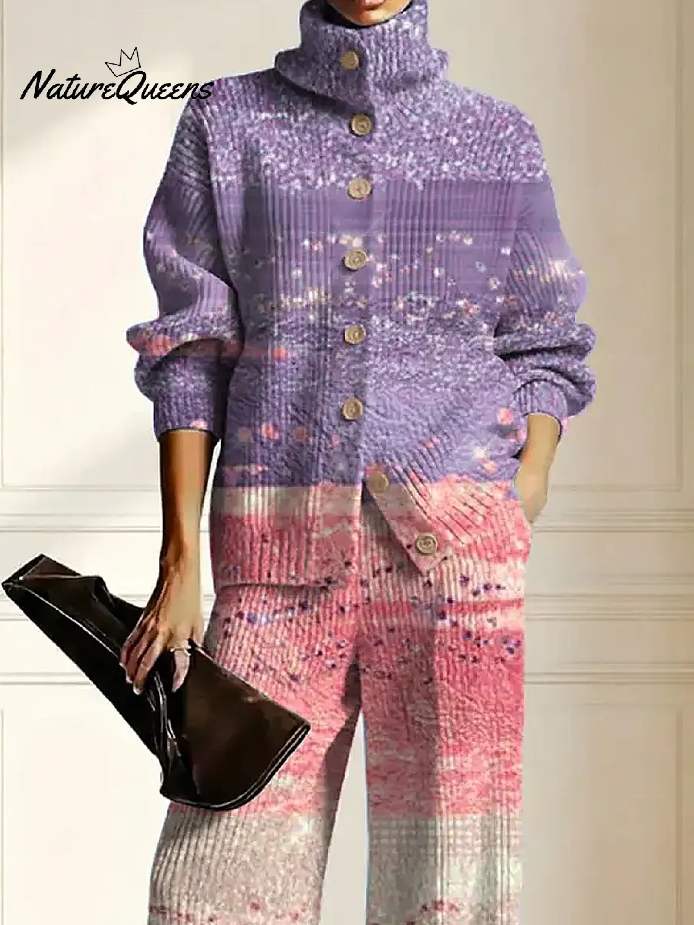 Women's Gradient Color Art Print Casual Cotton Knitted Suits