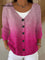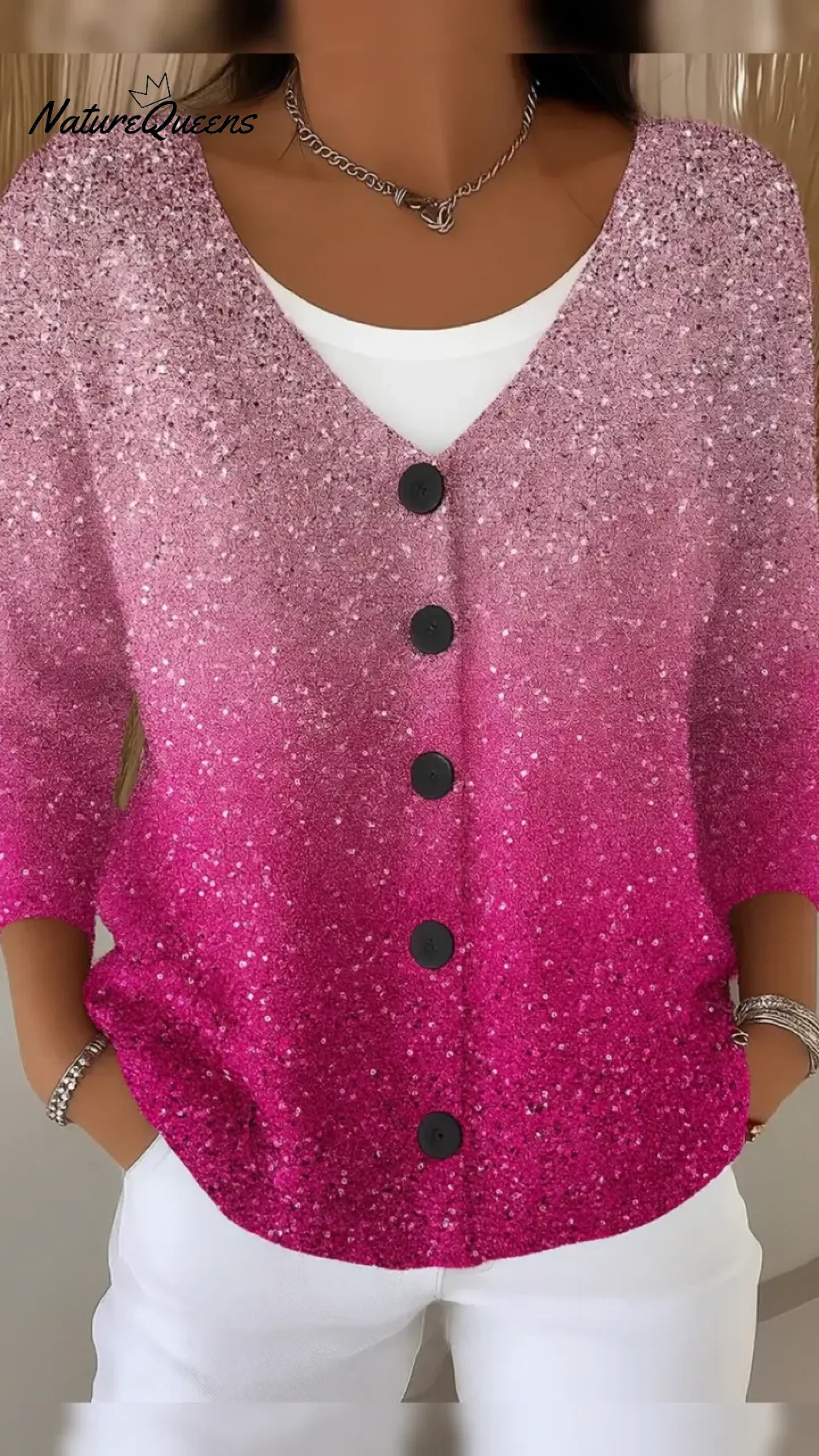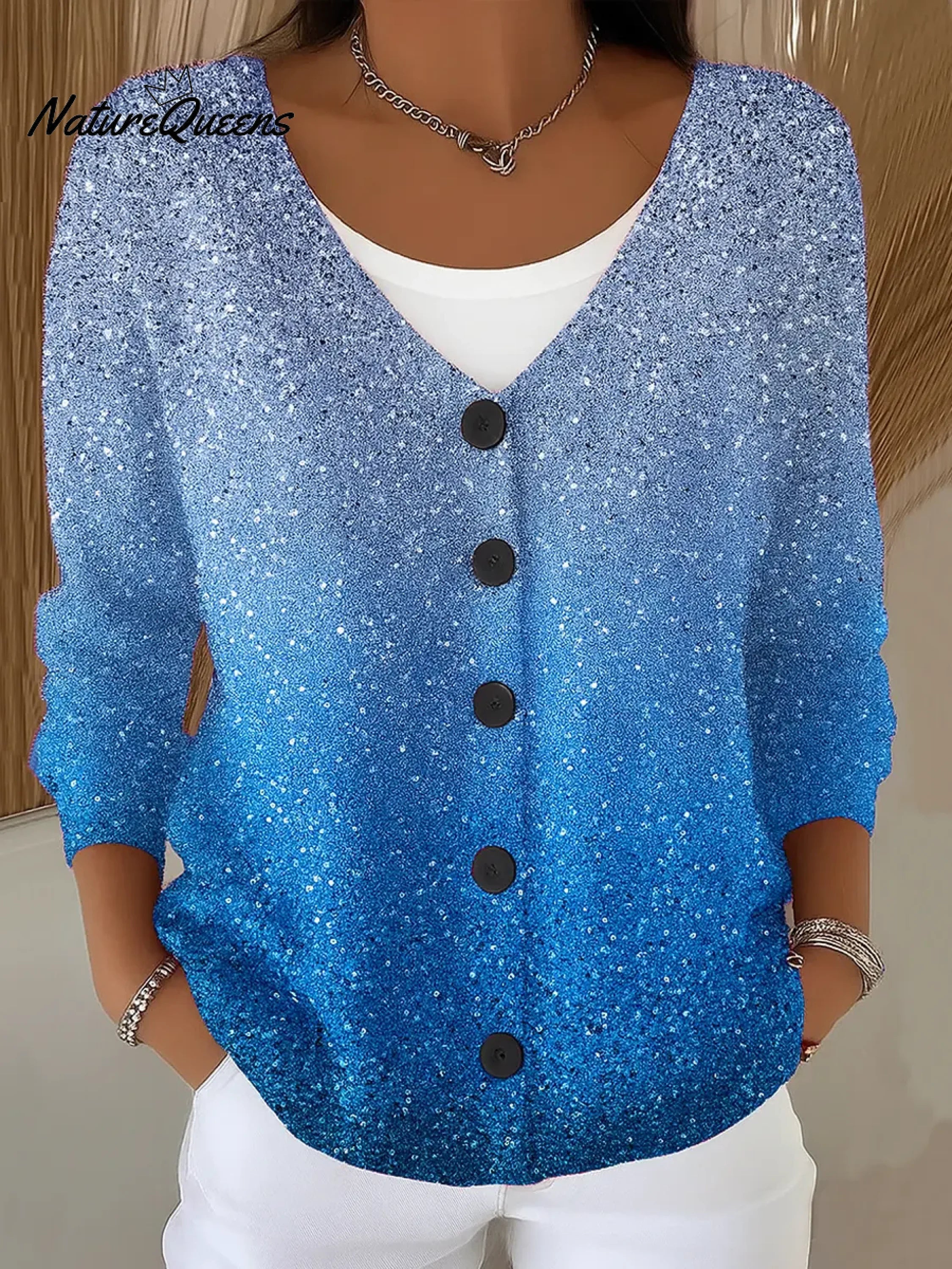 Women's Gradient Print V-Neck Long Sleeve Casual Loose Sequined Top