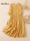 Women's Heavy Industry Embroidered Thin Cotton and Linen Crew Neck T-shirt