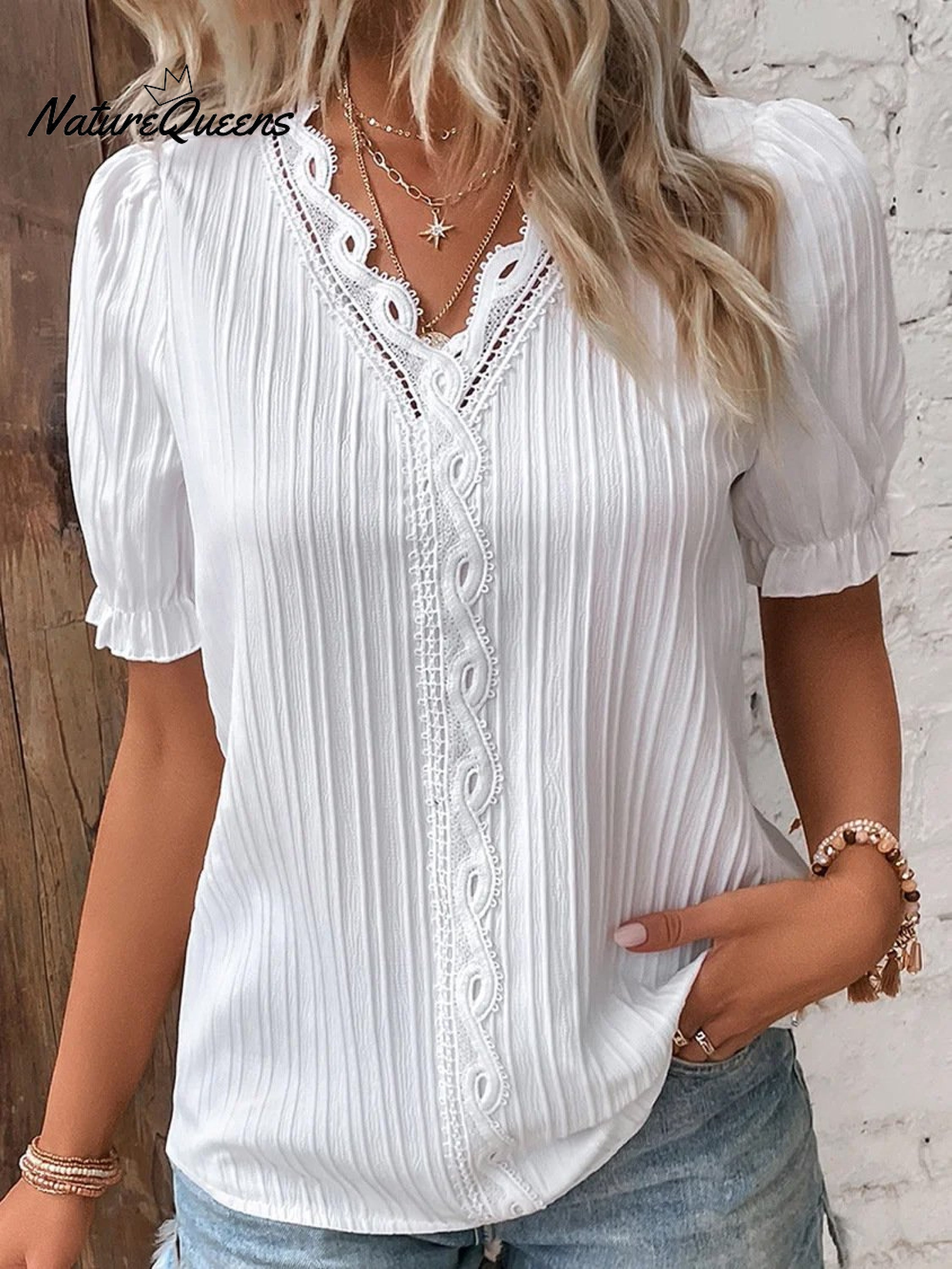 Women's Hollow Short Sleeve European and American Dress Shirt