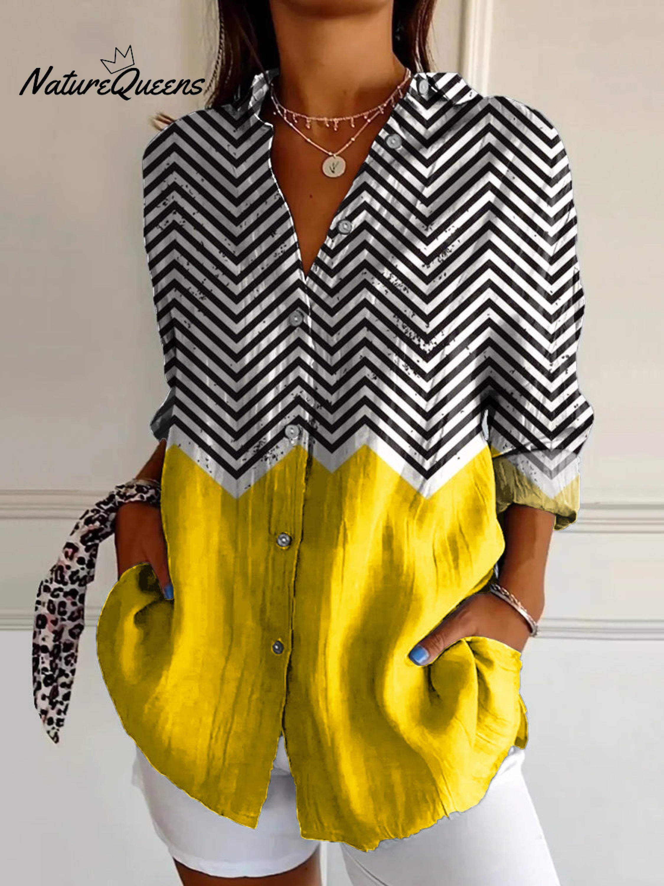 Women's Irregular Geometric Art Print Casual Cotton Shirt