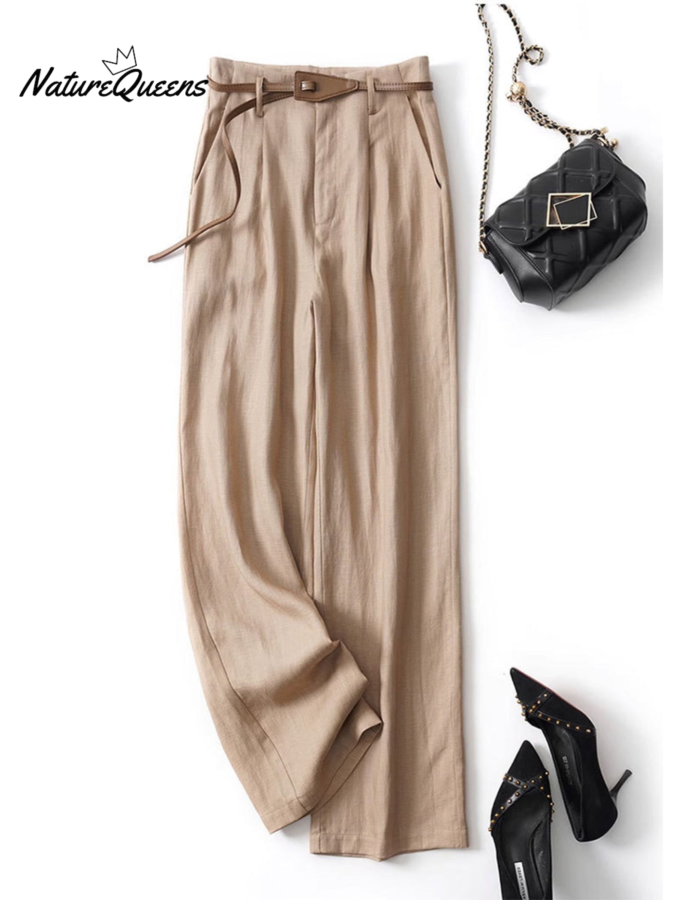 Women's Jacquard PatternTencel and Linen Wide-leg Casual Pants(Belt Included)
