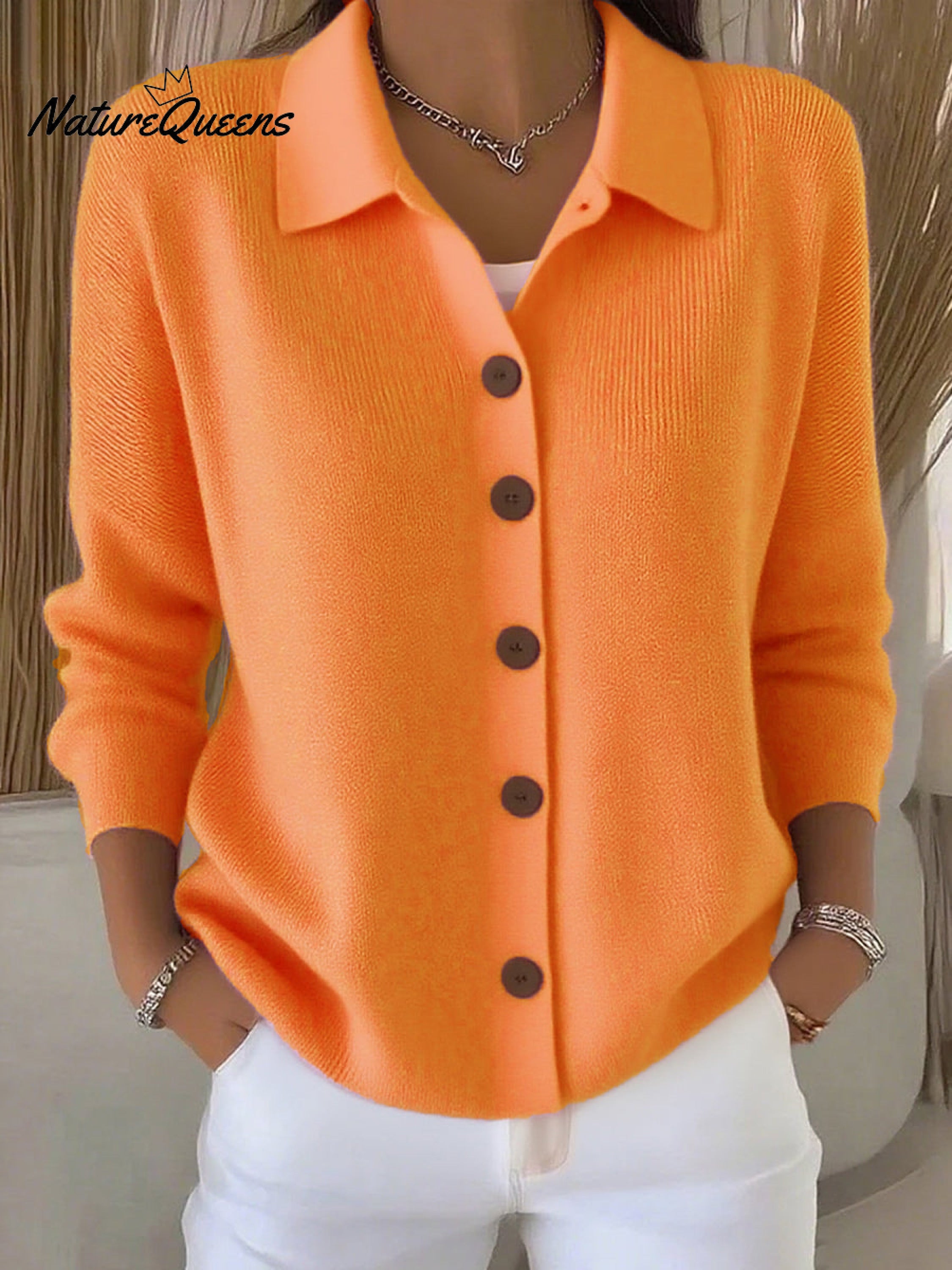 Women's Lapel Button Knitted Cardigan Sweater