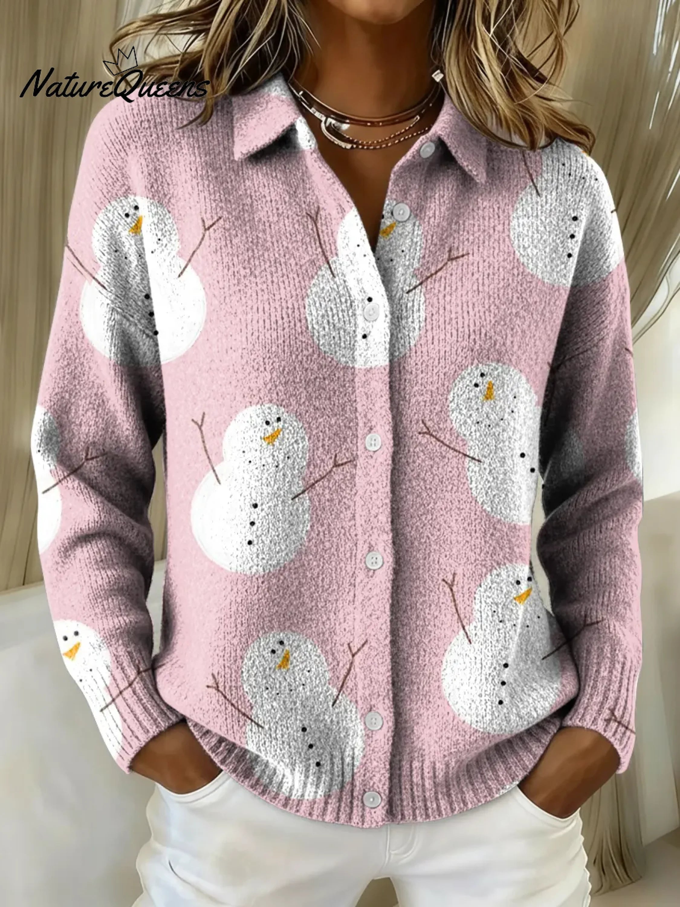 Women's Little Snowman Printed Collared Sweater
