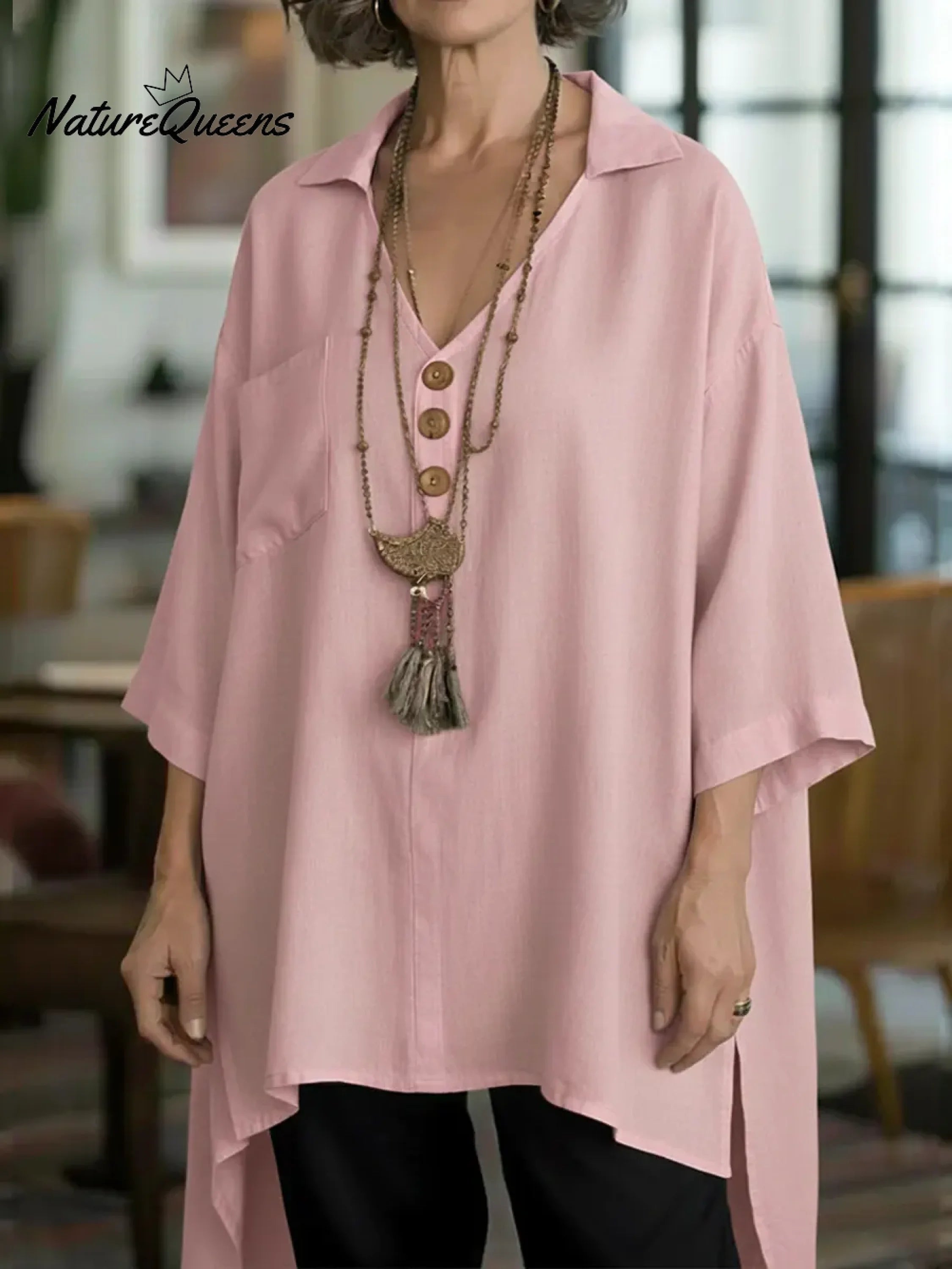 Women's Loose-fitting, Short-front, Long-back Linen And Cotton Top