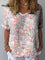 Women's Lovely Cute Floral Art Print Casual Cotton And Linen Shirt