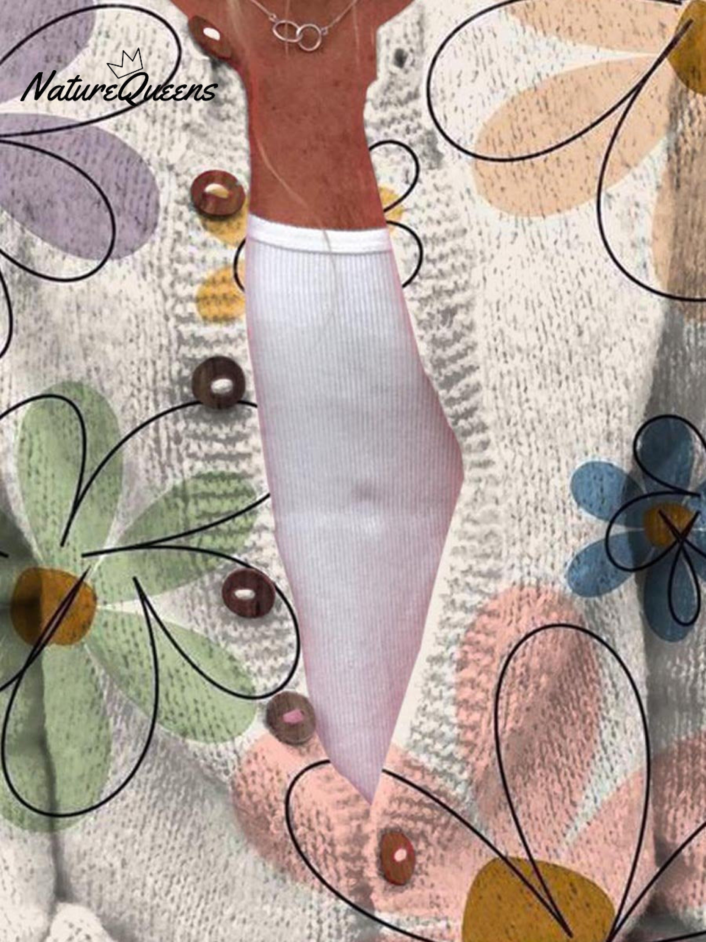 Women's Lovely Floral Art Print Buttoned Cardigan Sweater