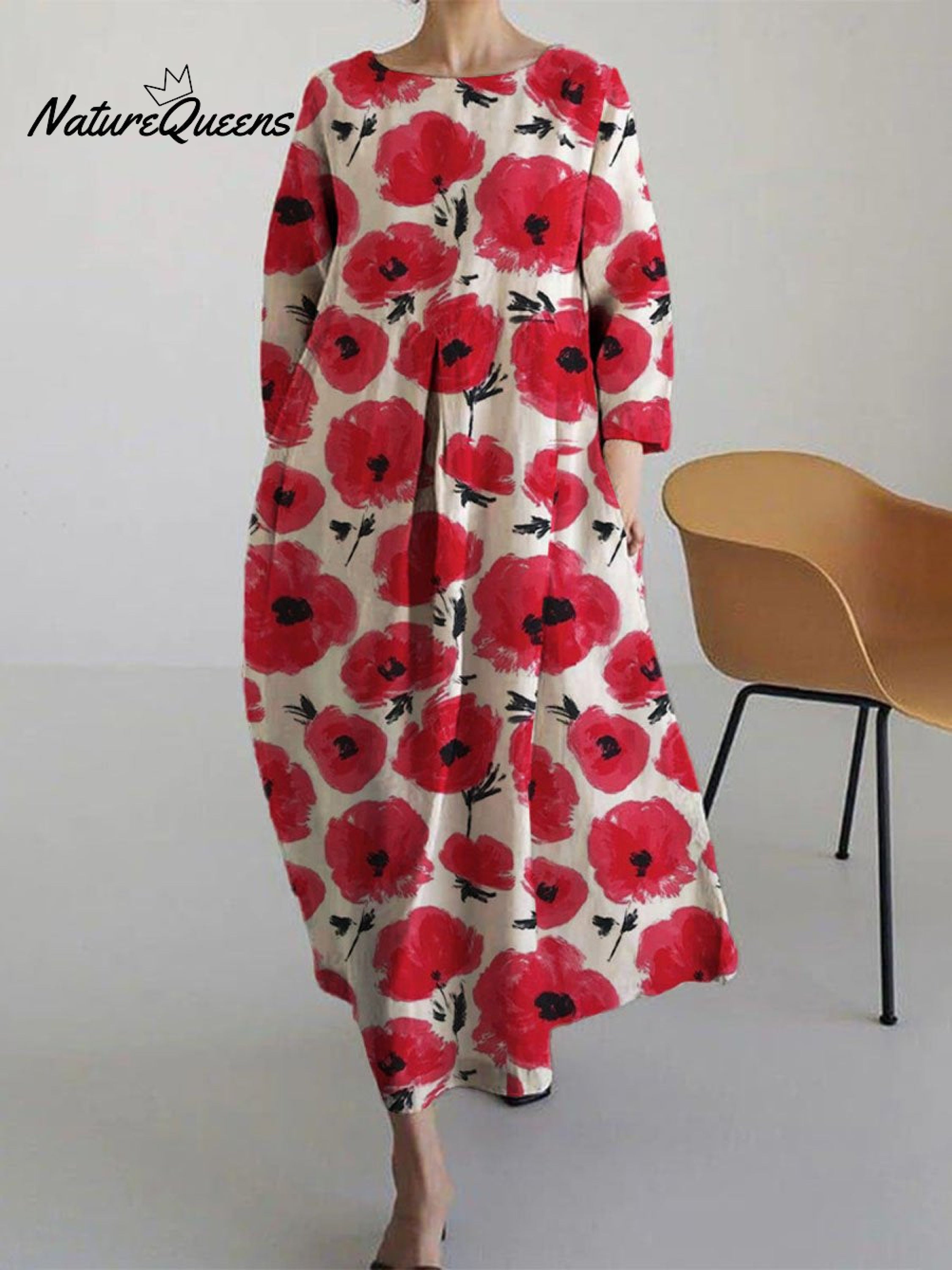 Women's Lovely Floral Art Print Large Size Loose Long Sleeve Casual Dress