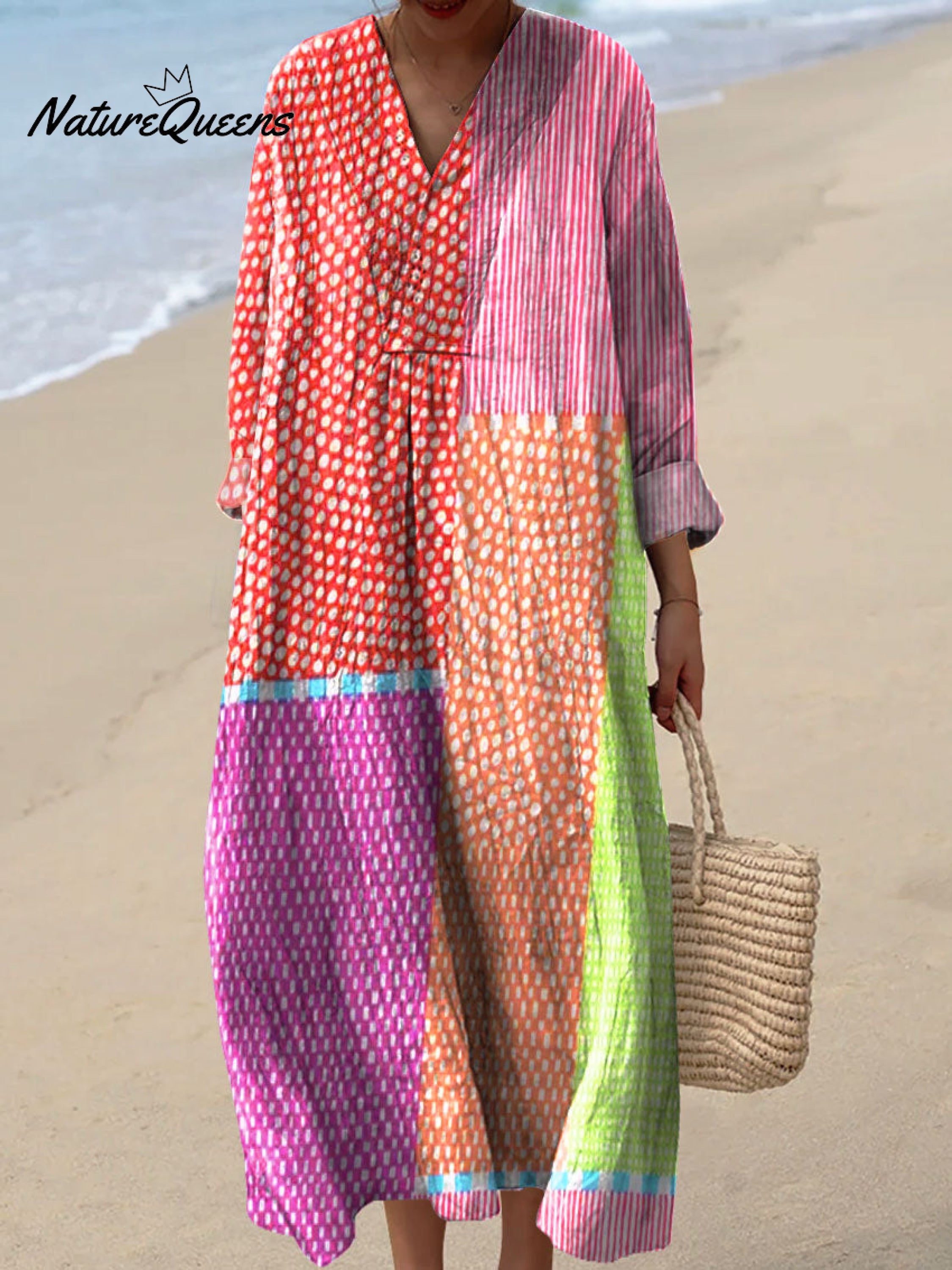 Women's Multicolor Blocks Cute Polka Dot Art Print Dress
