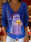 Women's Neon Lights Christmas Gifts Ghost Lights Pattern Art Print V-neck Solid Color Loose Shiny Sweater