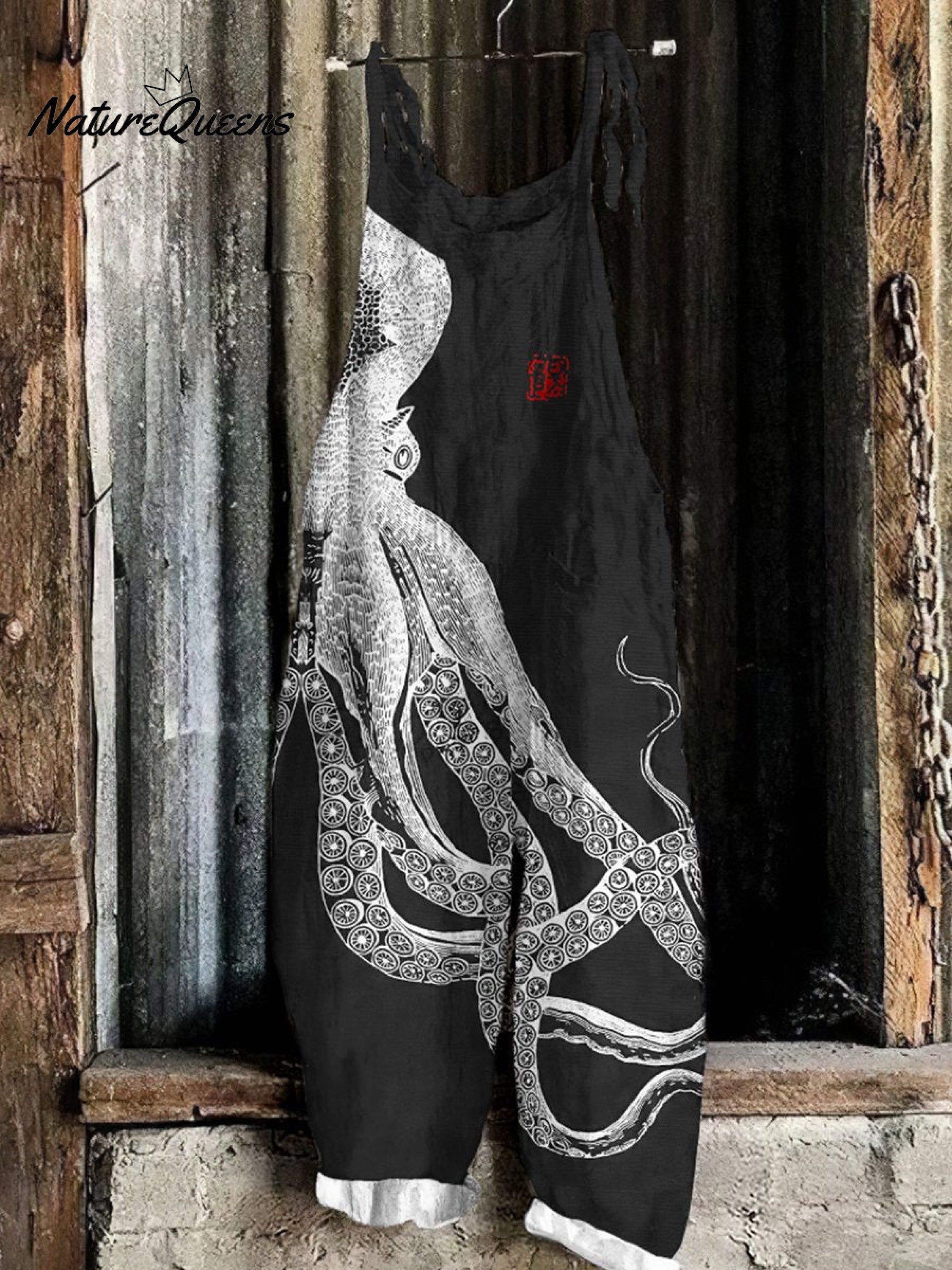 Women'sOctopus ArtPrint Casual 100% Cotton Wide Leg Jumpsuit
