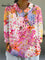 Women's Pastoral Flower Art Print Casual Cotton And Linen 3/4 Sleeve Shirt
