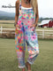 Women's Patchwork Floral Art Print Casual 100% Cotton Wide Leg Jumpsuit