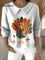 Women's Patchwork Turkey Glitter Retro Thanksgiving Print Casual Peter Pan Collar 3/4 Sleeve Sweater