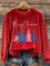 Women's Patriotic Christmas Tree With American Flag Colors Print Round Neck Sweatshirt