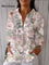 Women's Pink Floral Print Casual Linen V-neck Shirt