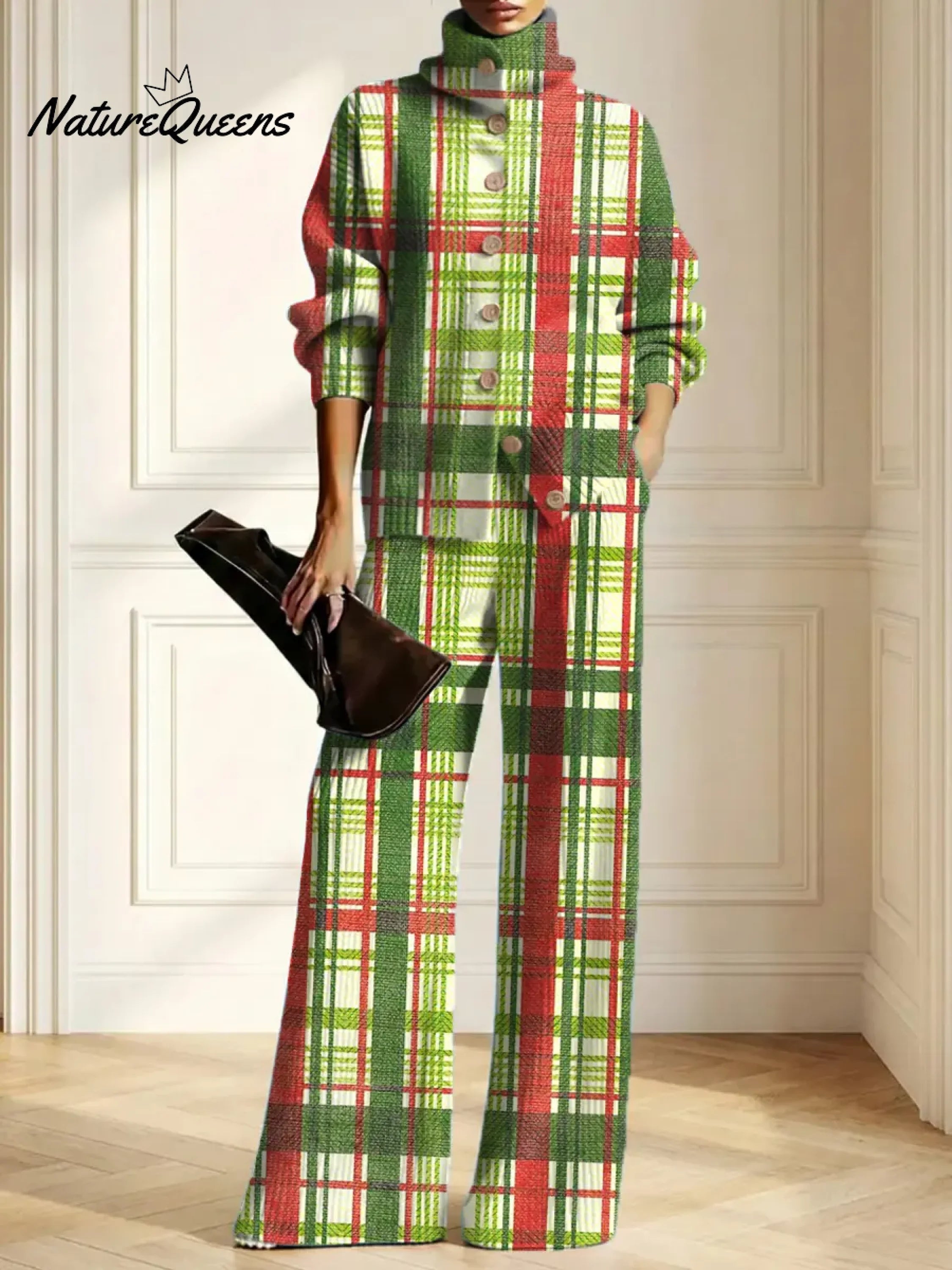 Women's Plaid Pattern Art Print Casual Cotton Knitted Suits