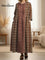 Women's Pleated Geometry Patterns Print Doll Collar Casual Long-sleeved Dress