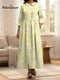Women's Pleated Vintage Flower Patterns Print Doll Collar Casual Long-sleeved Dress