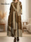 Women's Pleated Vintage Geometry Art Print Doll Collar Casual Long-sleeved Dress