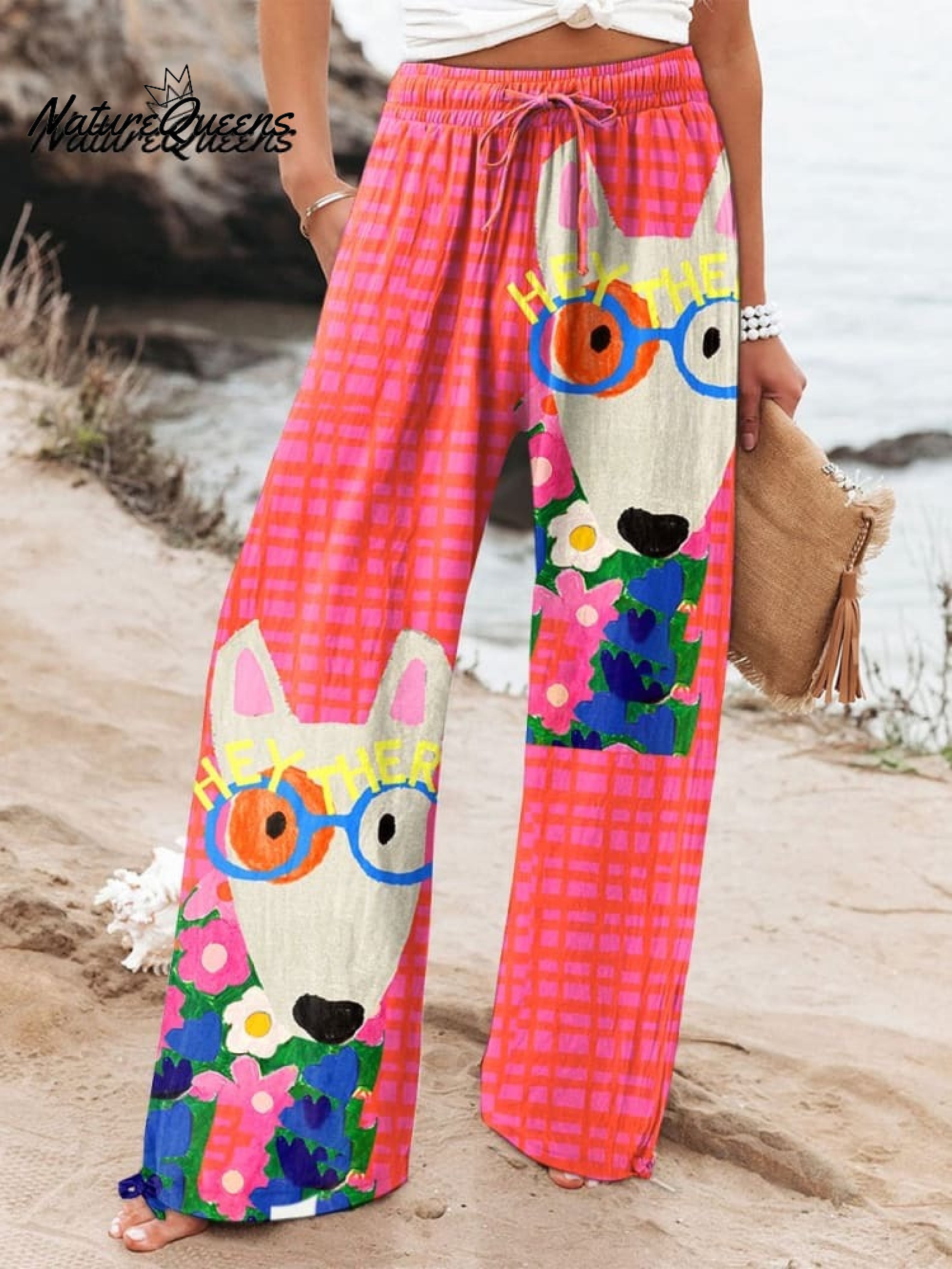 Women's DogArt Print Casual Cotton And Linen Shirt