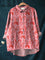 Women's Red Face Print Casual Cotton And Linen Ruffle Shirt