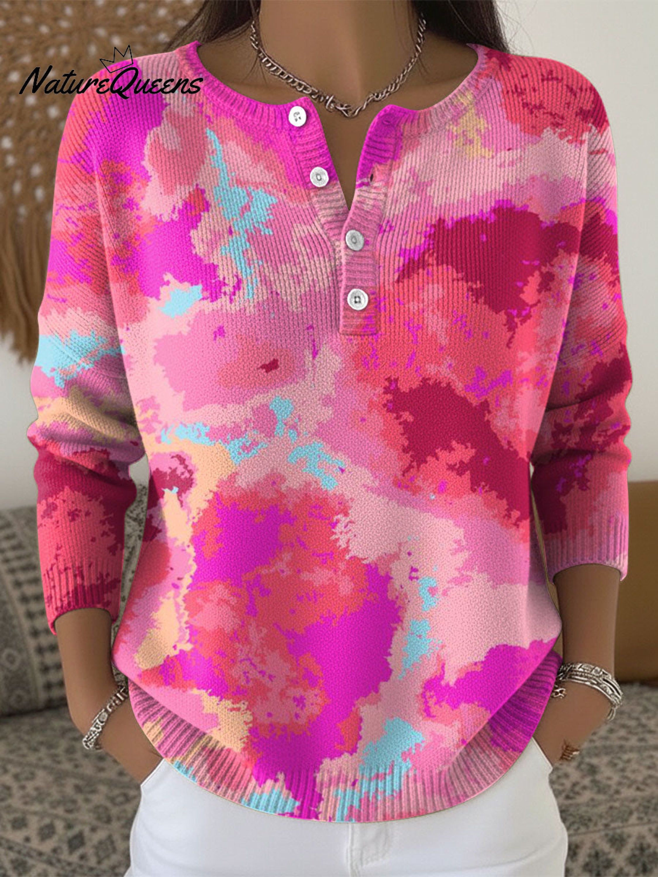 Women's Retro Abstract Flowers Floral Colorful Patterns Art Print Buttoned Cardigan Sweater