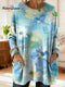 Women's Retro Abstract Geometric Colorful Splicing Patterns Art High-neck Long-sleeve Casual Loose Knit Dress