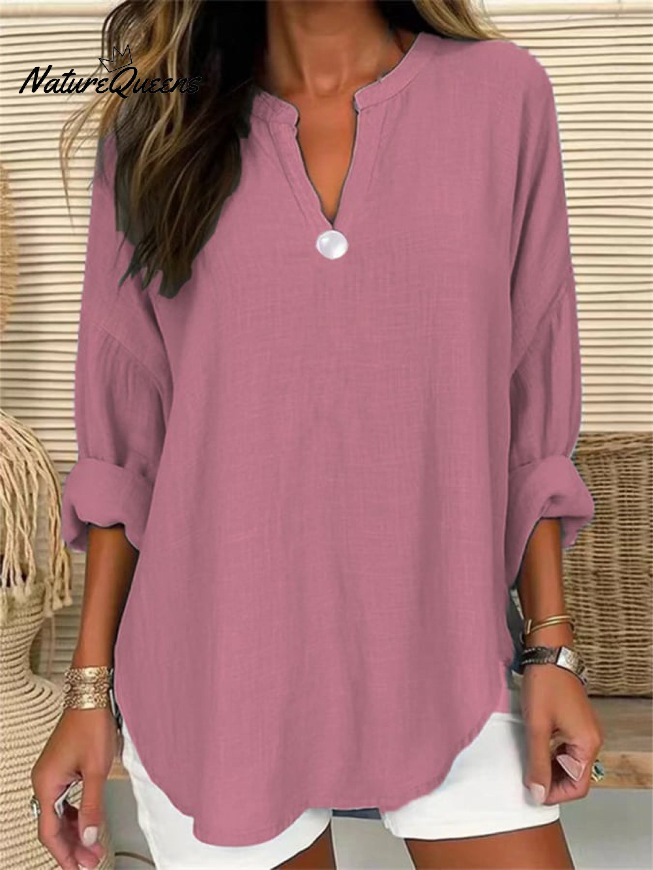 Women's Retro Casual V-Neck Solid Color One-Button Top