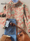 Women's Retro Colors And Plaid Patterns Art High-neck Long-sleeve Casual Loose Knit Dress