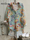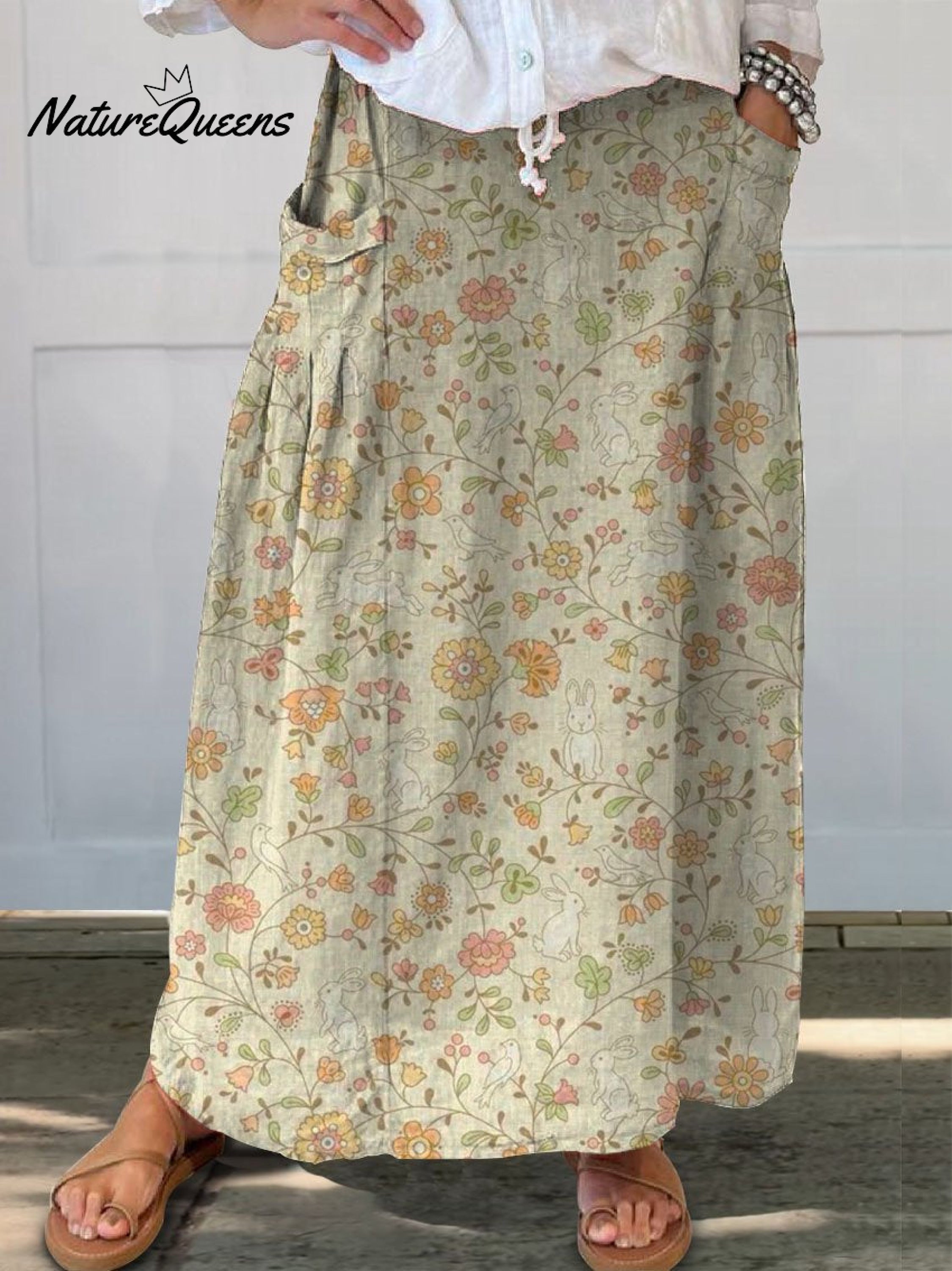 Women's Retro Elegant Floral Art Pattern Print Linen Pocket Skirt