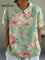 Women's Retro Floral Art Print Casual Cotton And Linen Shirt
