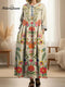 Women's Retro Floral Birds Art Casual Linen Pocket Skirt