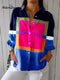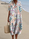 Women's Retro Floral Ethnic Print Stand Collar Long Sleeve Casual Loose Knit Dress