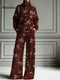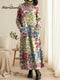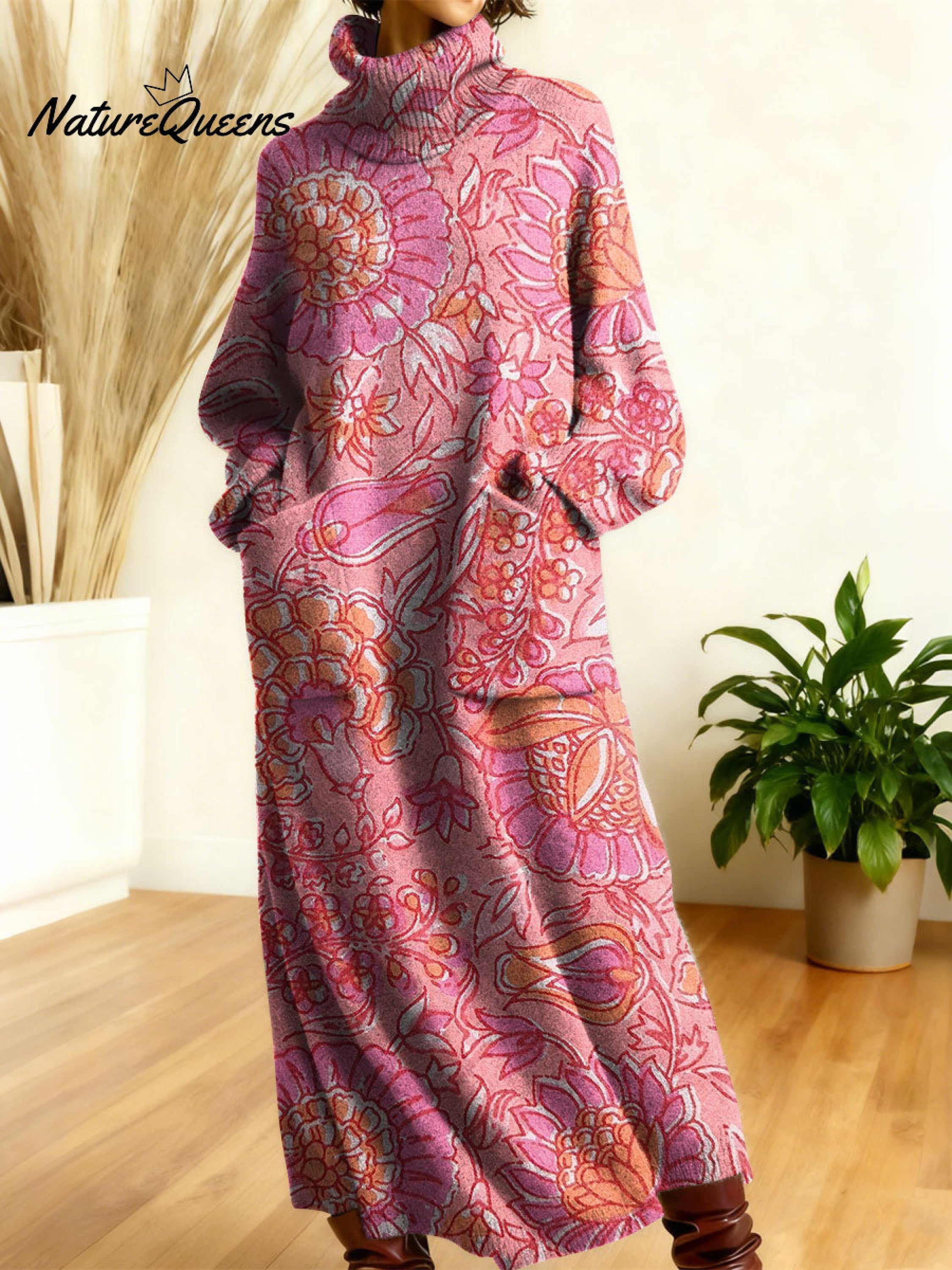 Women's Retro Floral Flowers High-neck Long-sleeve Casual Loose Knit Dress