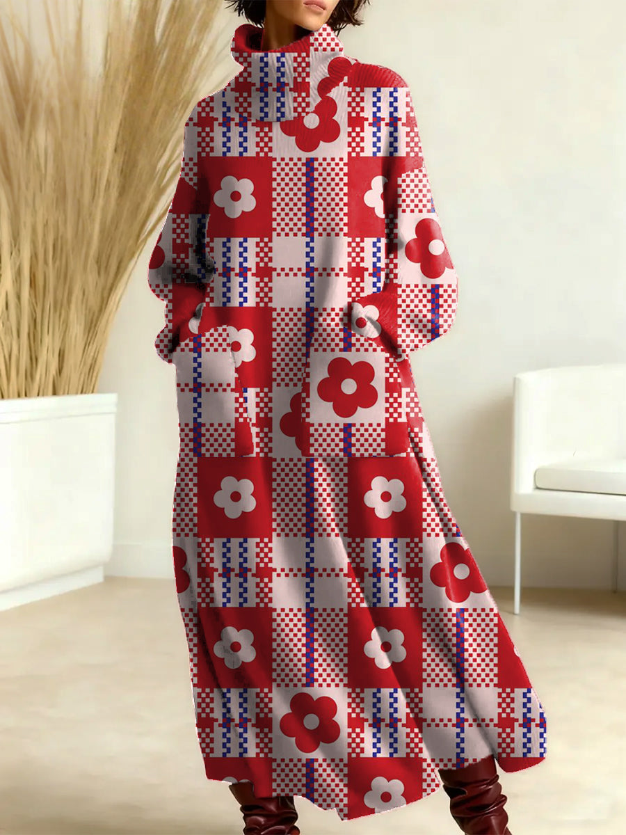 Women's RetroFloral Pattern Art Print Casual Cotton Knitted Dress