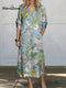 Women's Retro Flowers High-neck Long-sleeve Casual Loose Knit Dress