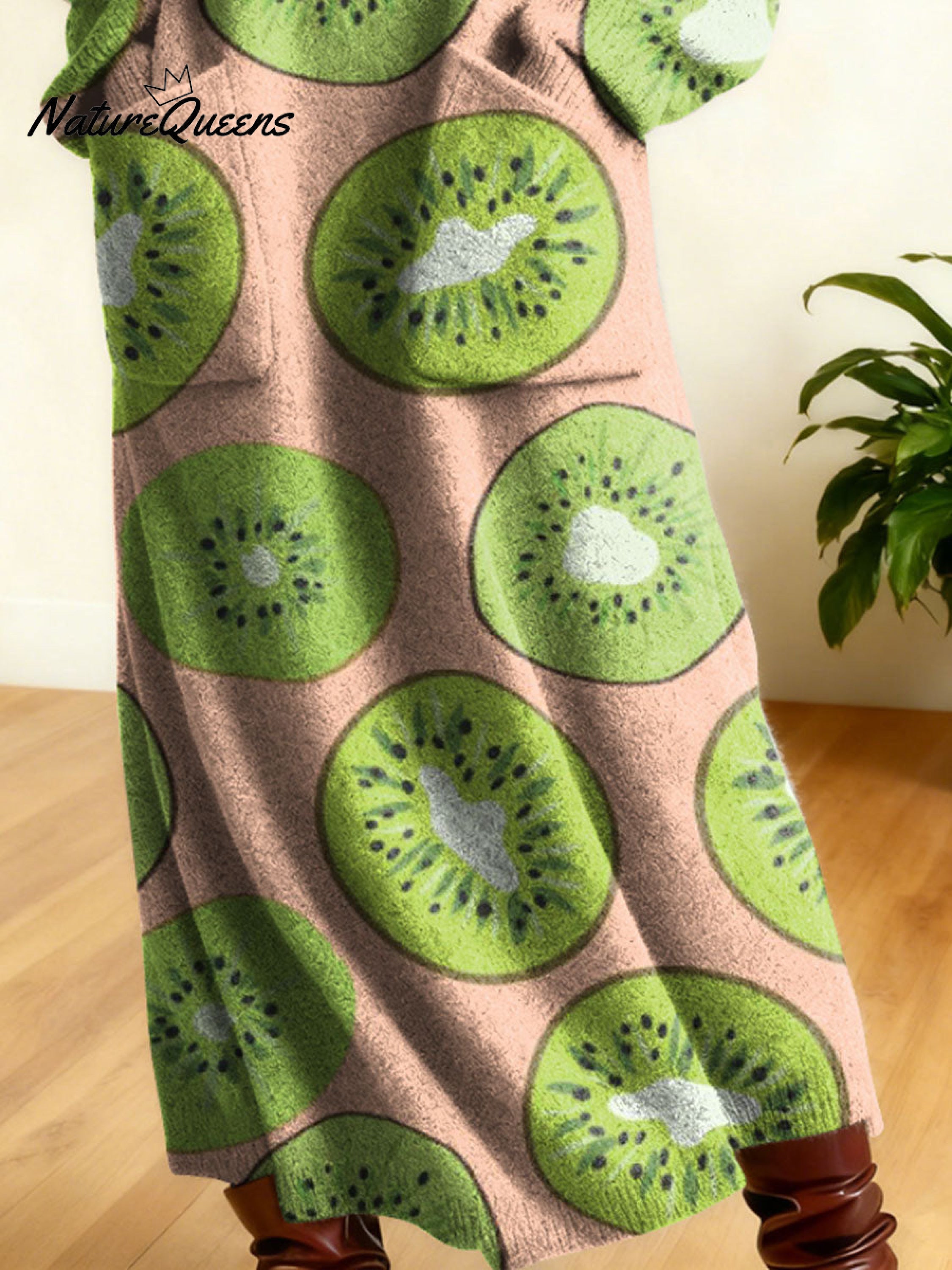 Women's Retro Fruit High-neck Long-sleeve Casual Loose Knit Dress