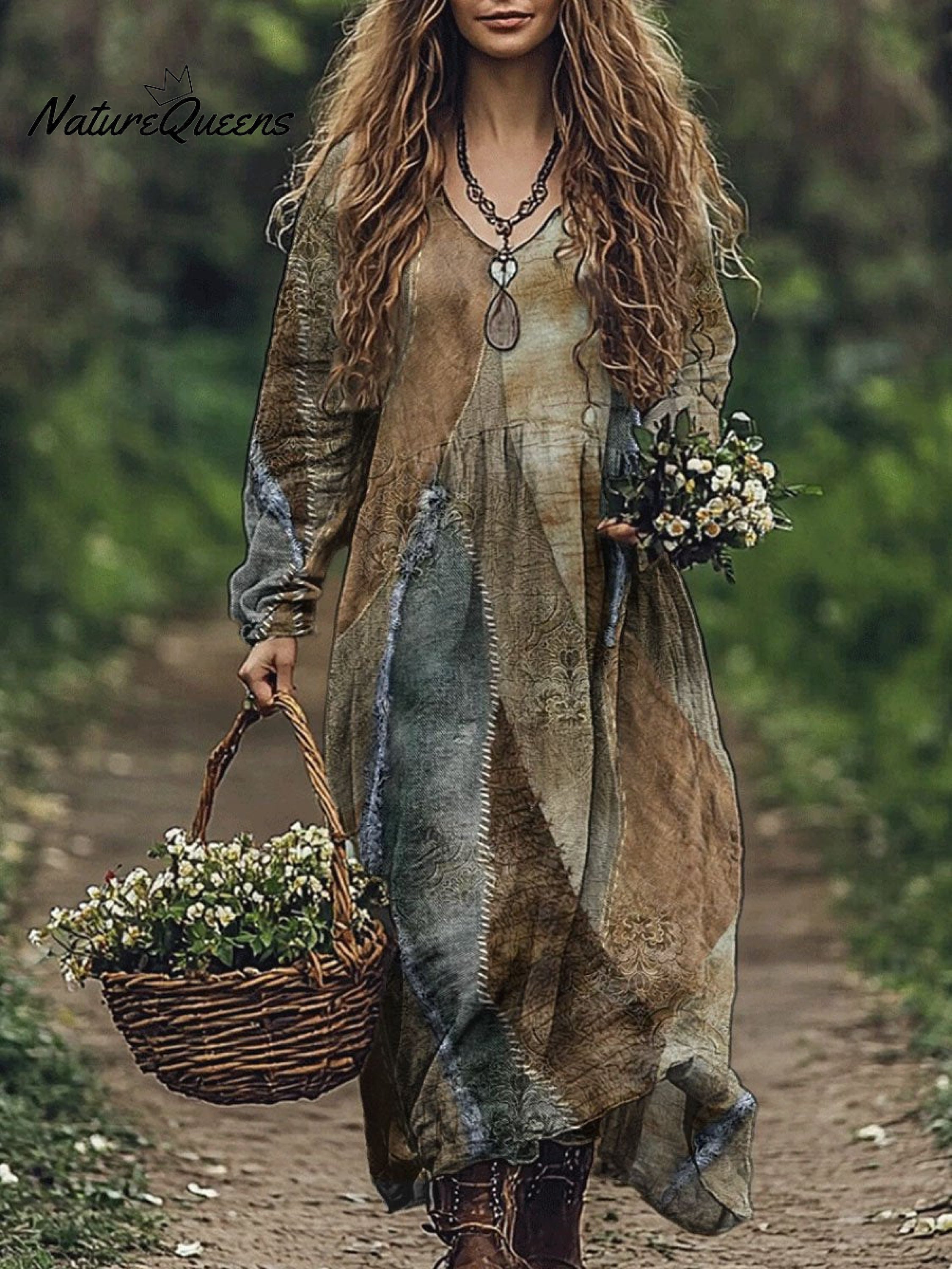 Women's Retro Hippie Art print Pocket Cotton Dress