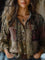 Women's Retro Patchwork Art Print Casual Long Sleeve Comfortable Cotton Shirt